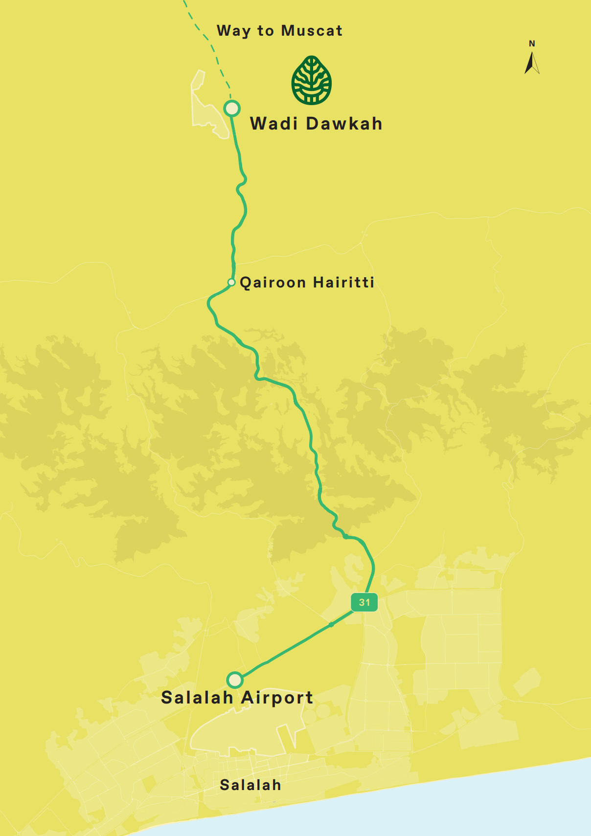 يقع وادي دوكة على بعد حوالي 40 دقيقة من مطار صلالة، وعلى بعد 40 كيلومترًا فقط شمال وسط مدينة صلالة. تضم مدينة صلالة مطارًا دوليًا يستقبل رحلات يومية من دبي والدوحة ومسقط. وتزيد وتيرة وعدد الرحلات المباشرة من وجهات أخرى خلال موسم الخريف في فصل الصيف. أما للقادمين بالسيارة، يقع وادي دوكة على بعد حوالي 10 ساعات من مسقط.